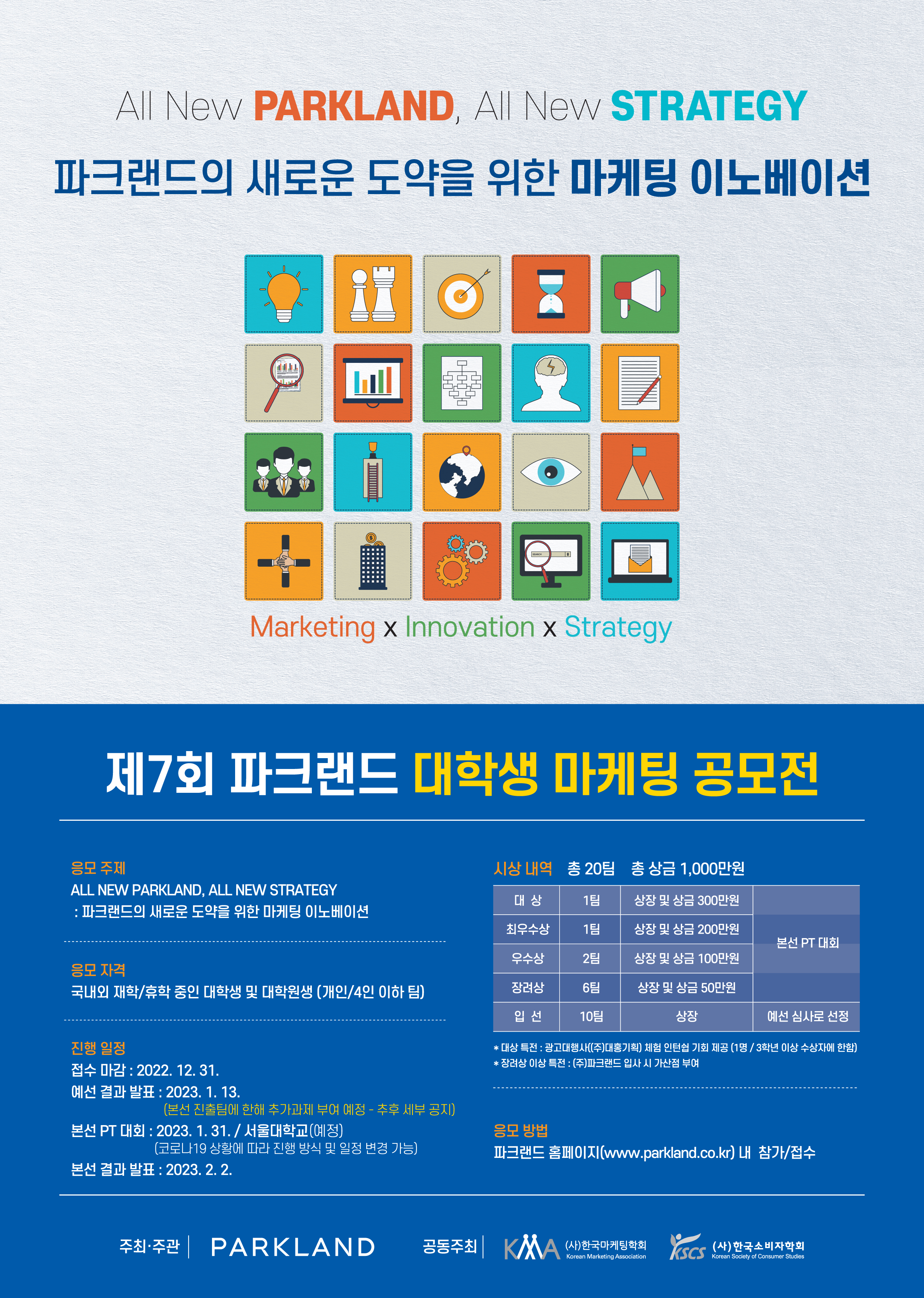 [한국마케팅학회] 공동주최 '제 7회 파크랜드 대학생 마케팅 공모전' 안내