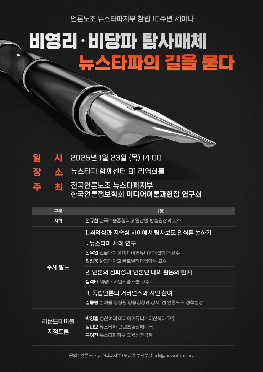 주최 : 전국언론노조 뉴스타파지부, 한국언론정보학회 미디어이론과현장 연구회