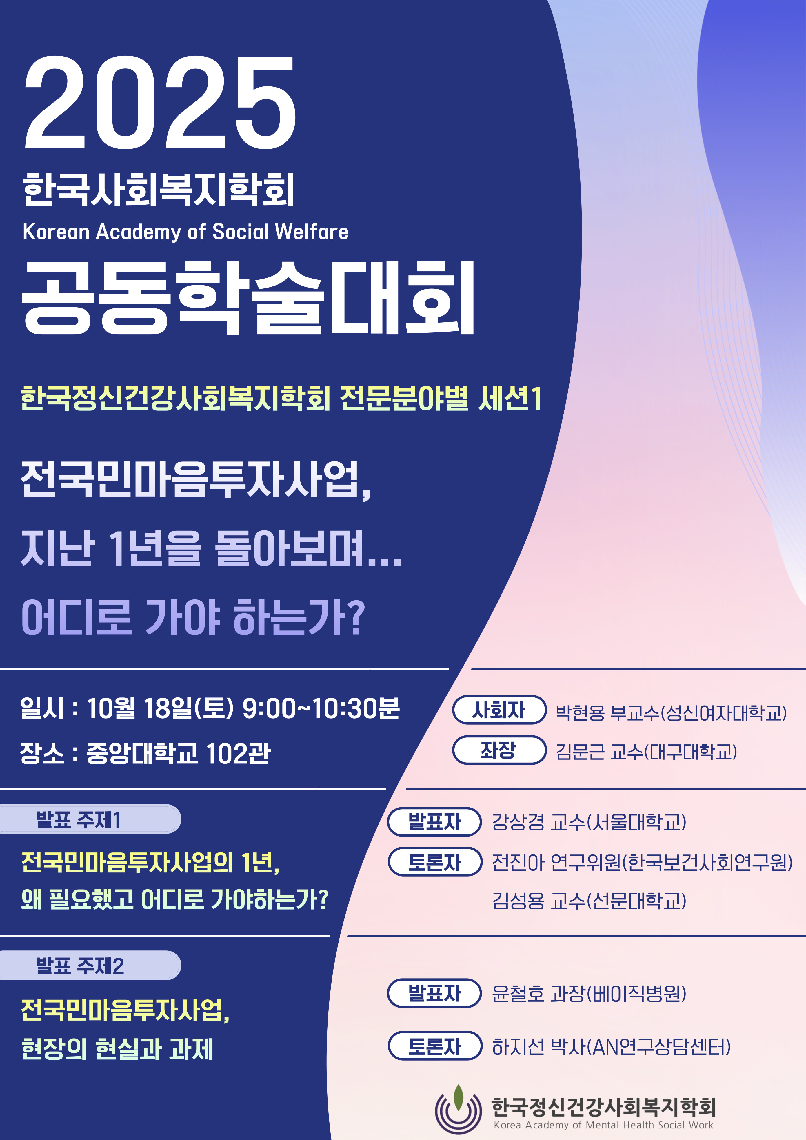 [한국정신건강사회복지학회] 2025년 공동학술대회 개최 안내 및 사전신청 안내 건
