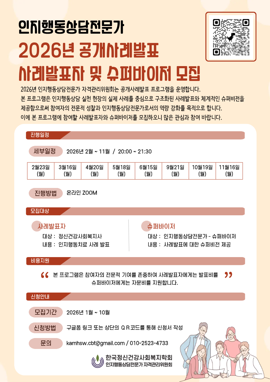 [인지행동상담전문가 자격관리위원회] 인지행동상담전문가 2026년 공개사례발표 사례발표자 및 슈퍼바이저 모집 안내