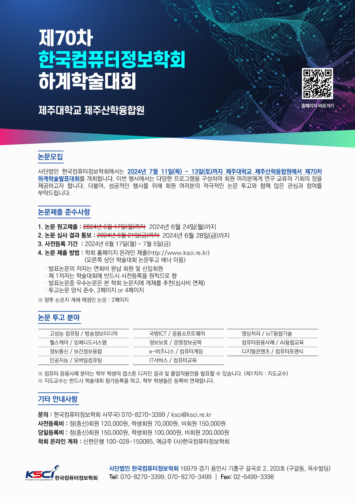 2024년 제70차 한국컴퓨터정보학회 하계학술대회 논문 모집