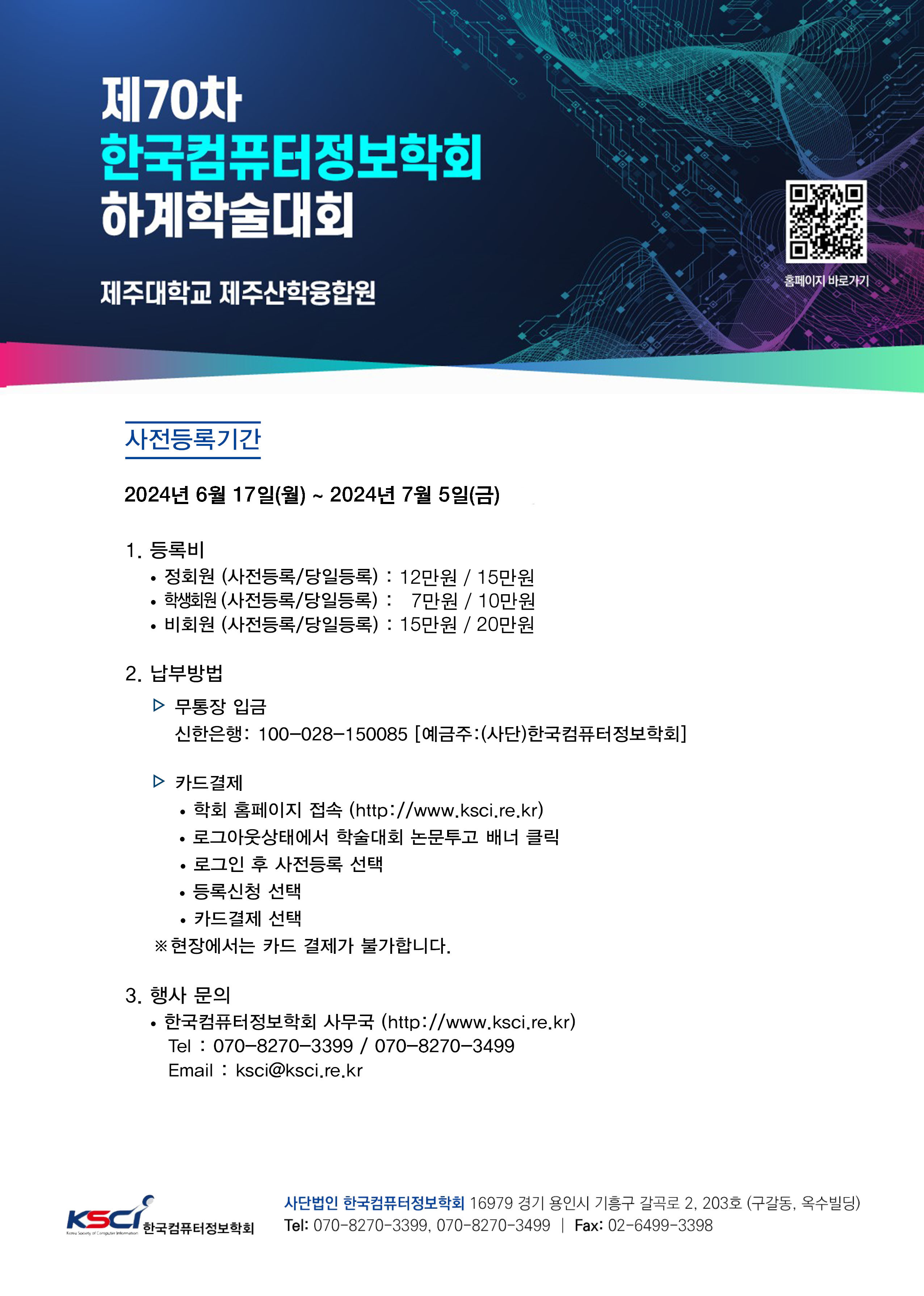 2024년 제70차 한국컴퓨터정보학회 하계학술대회 팜플렛