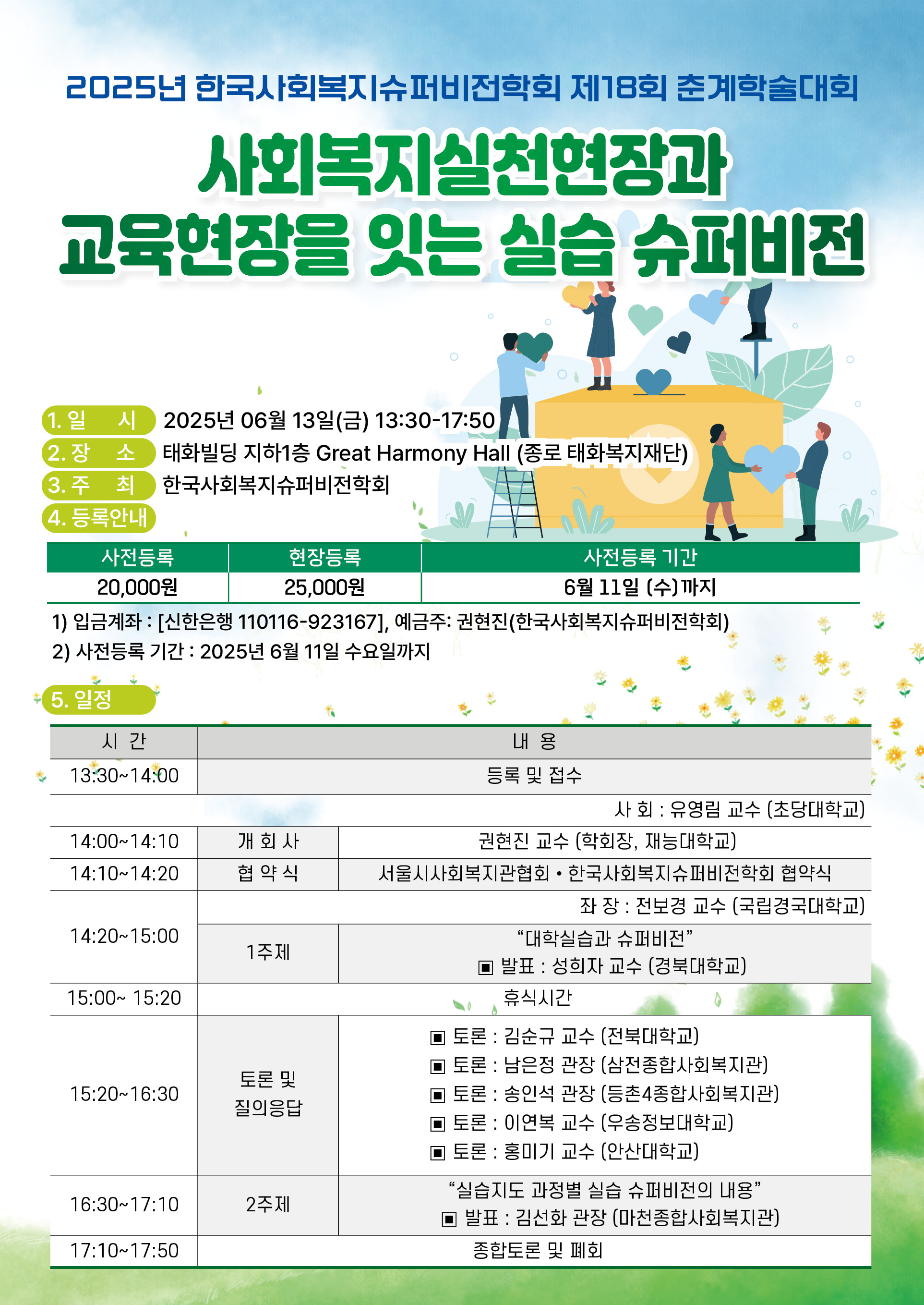 2025년 한국사회복지슈퍼비전학회 제18회 춘계학술대회 개최 안내