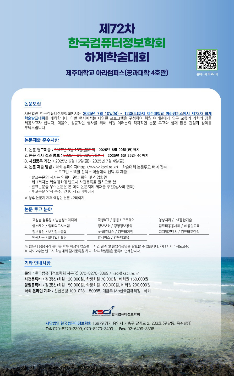 2025년 제72차 한국컴퓨터정보학회 하계학술대회 사전 등록 안내