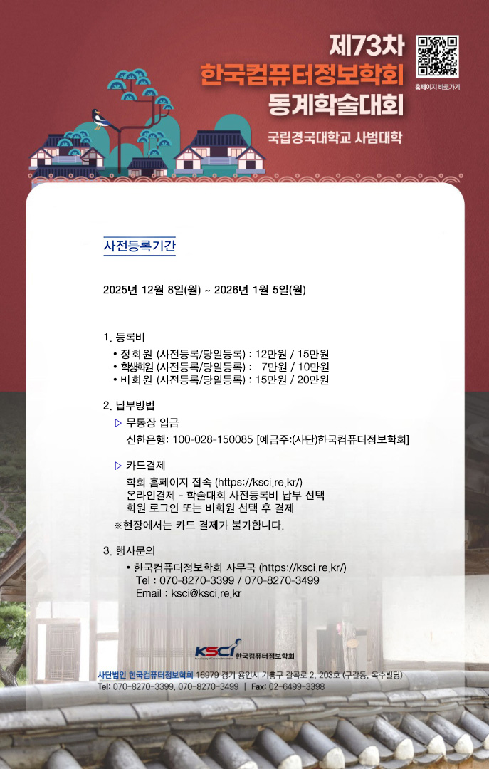 2026년 제73차 한국컴퓨터정보학회 동계학술대회 사전 등록 안내