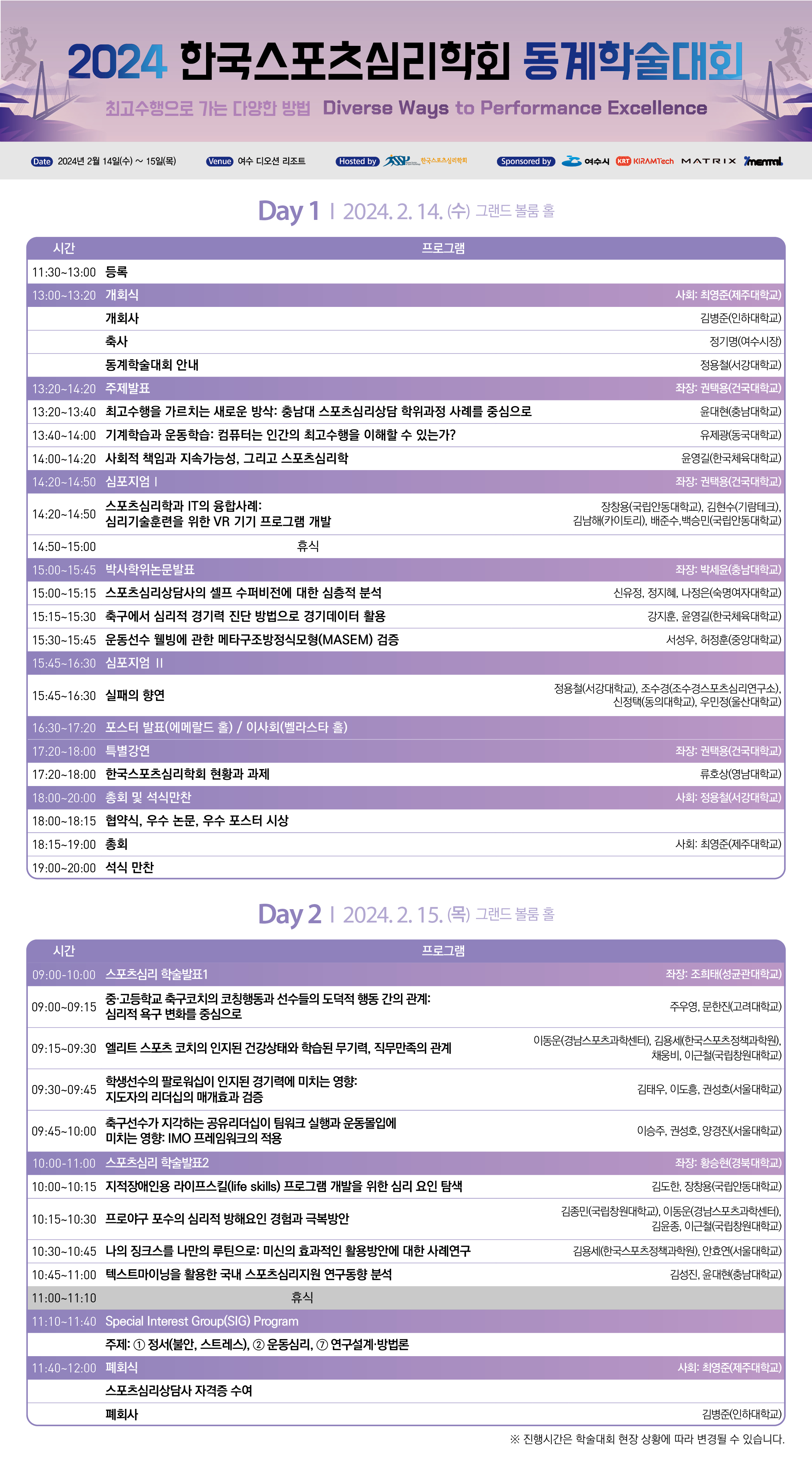 2024년 한국스포츠심리학회 동계학술대회 프로그램 상세일정표 안내